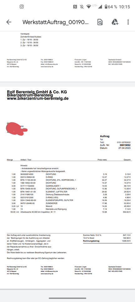 Habe gerade meine von der Inspektion abgeholt... Ist das bei euch auch so "günstig"?🥴 Naja, was muss, das muss wohl