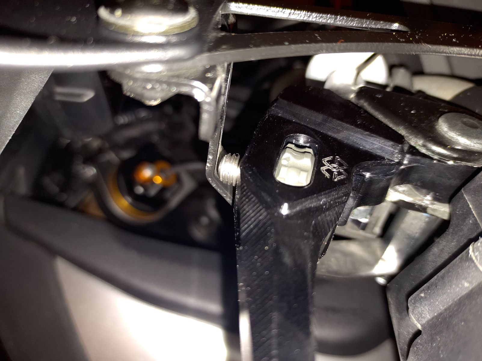 Aber sehe ich das richtig: Auf dem linken Bild geht das Befestigungsblech des Handguards gerade so an der etwas herausstehenden Einstellschraube des Kupplungshebels vorbei, kann das sein?