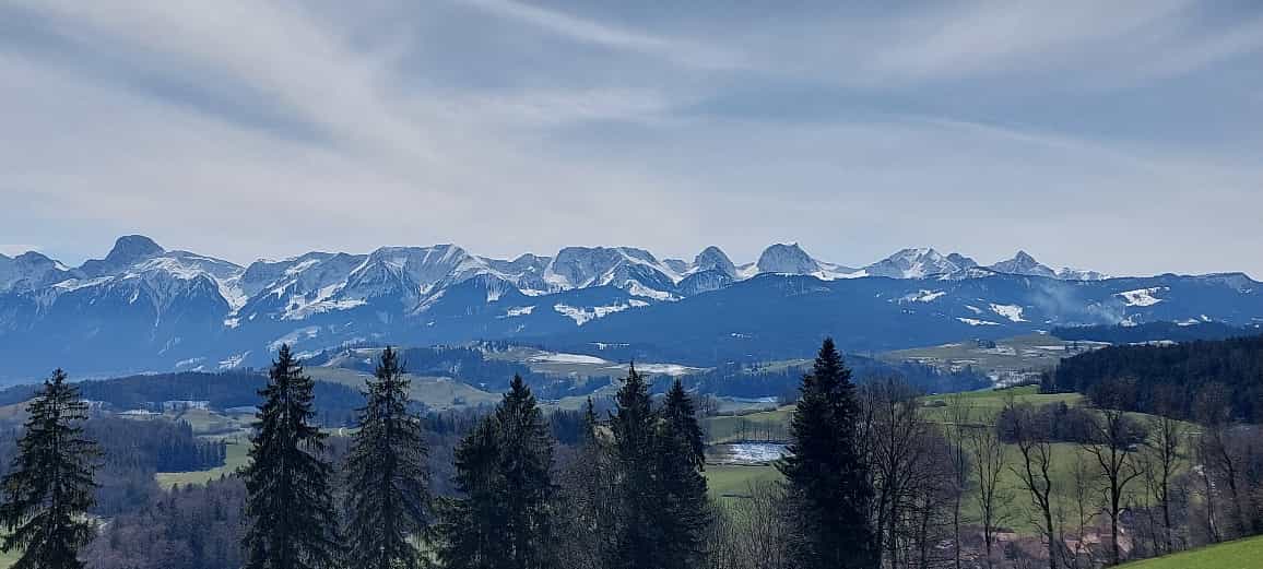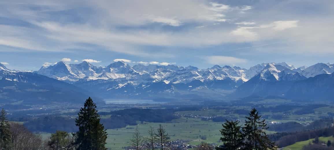 vom Längenberg Blick Richtung Thunersee und Alpen