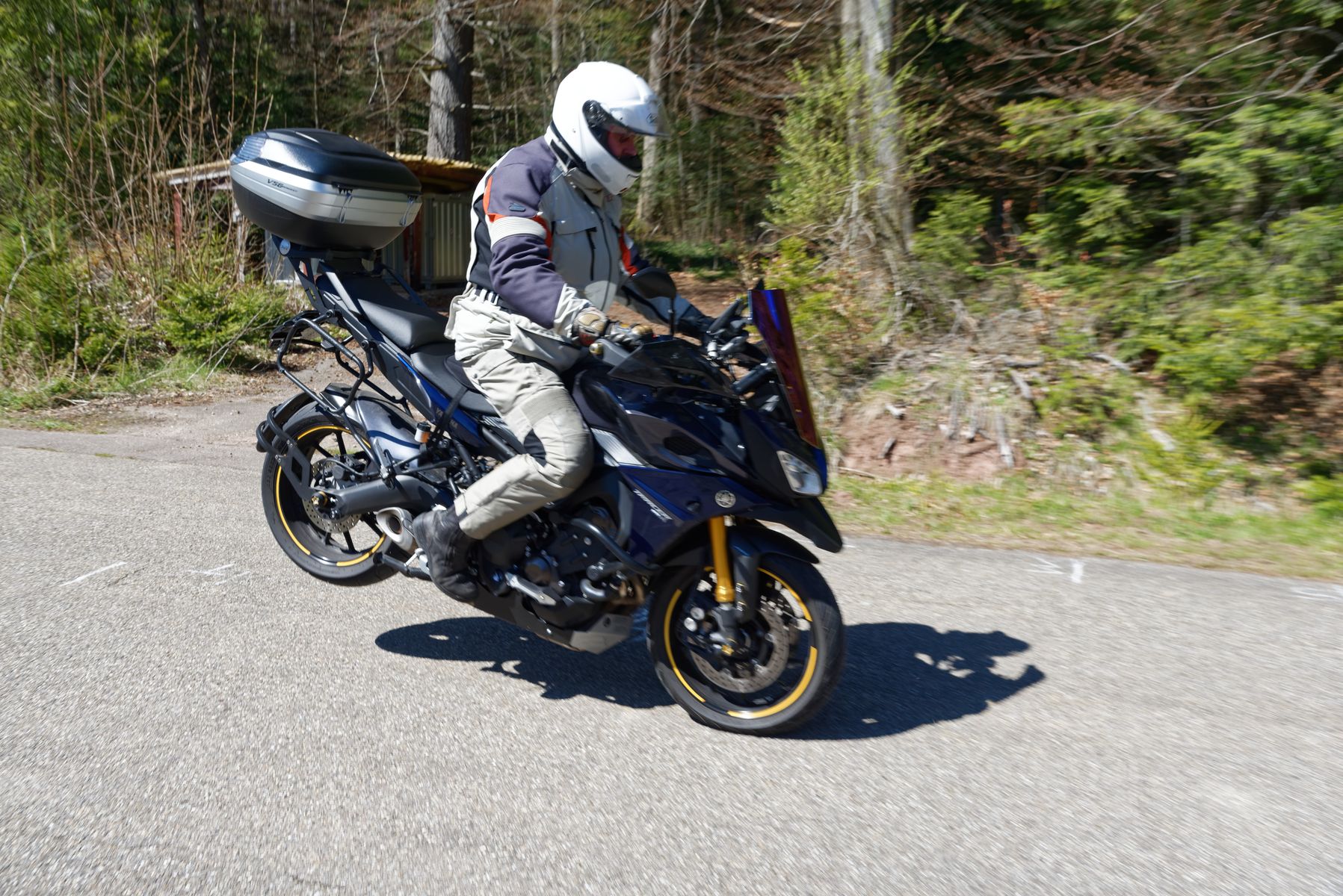 Dann habe ich mit ECU die Höchstgeschwindigkeit über 210 freischalten lassen. Ich bin 1x auf der deutschen Bahn 240 Tacho gefahren. Dabei fing das Moped allerdings schon an zu schlingern (mit grossem Topcase Givi V47). Das heisst die Beschränkung bei der alten Tracer auf 210 war wohl der Stabilität geschuldet.