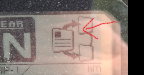 Nein, ich meinte das Symbol über dem Kilometeranzeiger.Mit den zwei Pfeilen.