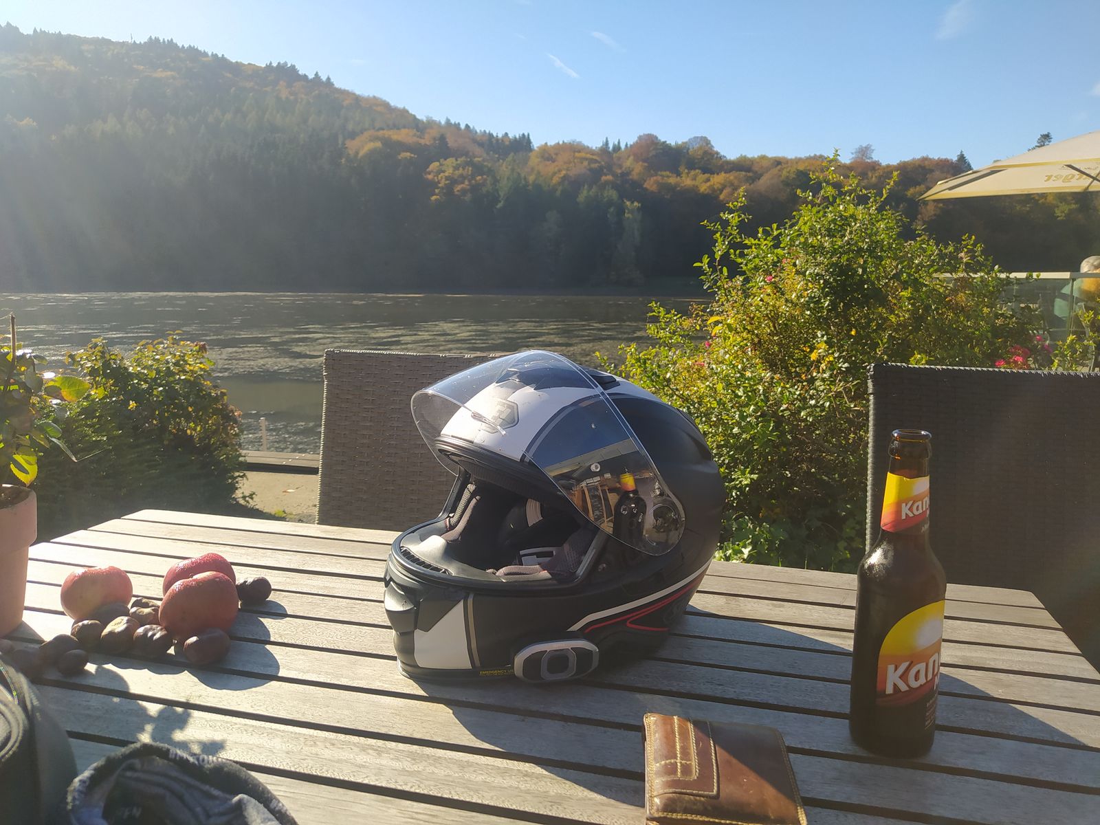 da der Wetterbericht und das tatsächliche Wetter am Samstag ausnahmsweise mal übereinstimmten, beschloss ich, eine Tagestour von Aachen nach Biersdorf (Stausee Bitburg) zu unternehmen. Da am frühen Morgen die Straßen noch feucht waren, startete ich erst gegen 11.00 Uhr. Vorher noch Profiltiefe und Reifendruck kontrolliert, der Kette noch eine Lage Drylube gegönnt und schon gings los. Zum Thema Warmfahren des Motors lautet meine Devise schon immer: die ersten 20 Minuten fürs Motorrad (also keine Drehzahlorgien und kein untertouriges daherrollen), der Rest dann für mich.