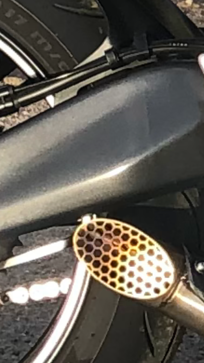 …hier der jetzige Abstand zwischen Endrohr und Schwinge!