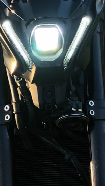Hier mein „Umbau“ i.S. Hupe! Das Teil schwarz lackiert, zumindest bei meiner schwarzen MT kann ich damit leben! 😊