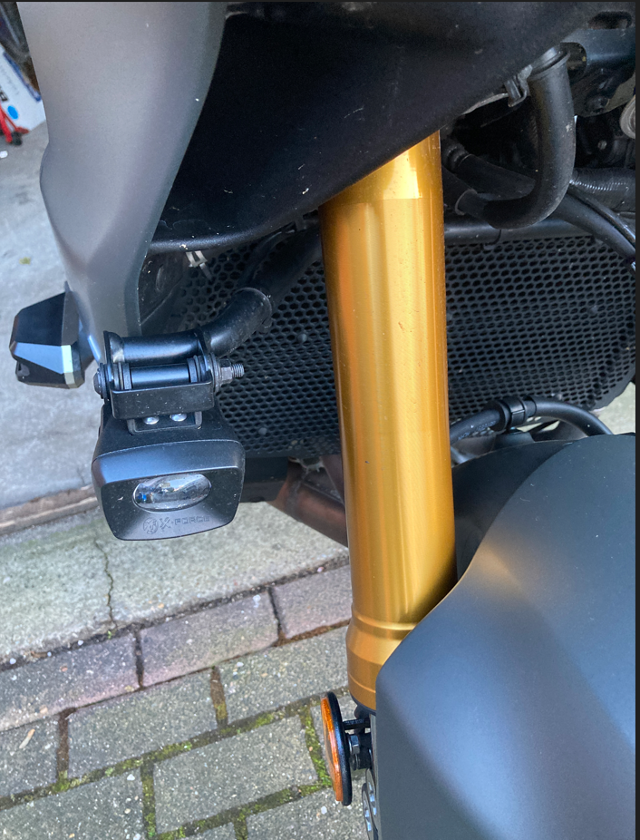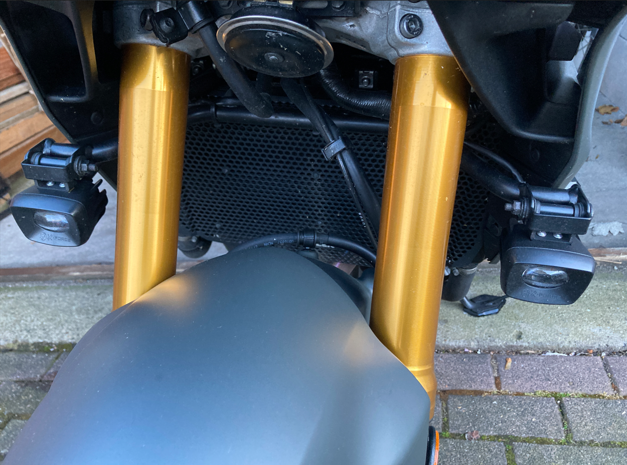 wenn es jemanden interessiert : ich habe die Original-Zusatzscheinwerfer mit der Original-Halterung verbaut. In diesem Fall passen die Sturzbügel von SW-Motech nicht mehr, da diese auf gleicher Höhe wie die Scheinwerfer vor der Verkleidung stehen. Ich bin daher auf die Sturzpads von SW-Motech ausgewichen ....