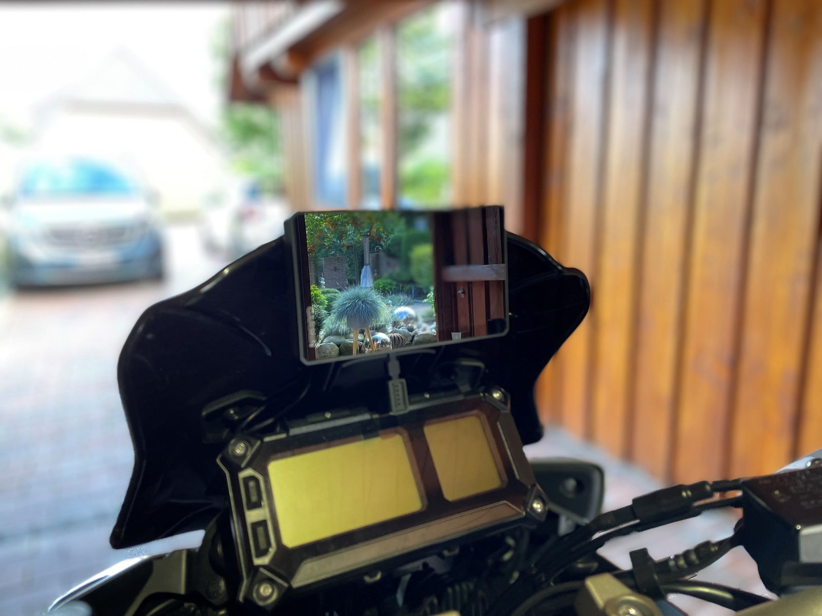 Kein wackeln kein vibrieren, eine sehr gute Draufsicht und weiterhin freien Blick auf das Cockpit so wie auf die Blinker Kontrollleuchten!