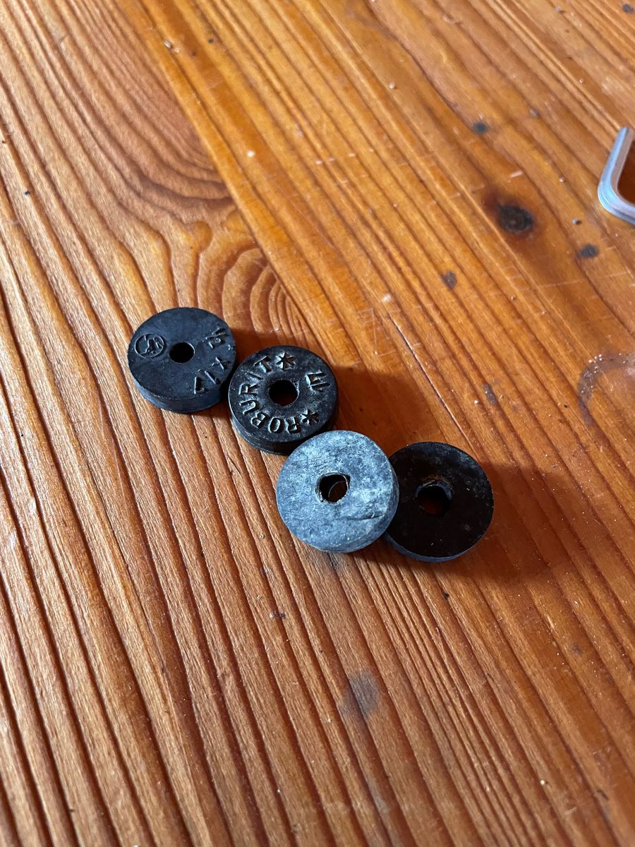 Da hatte ich ein paar Gummidichtungen (4,5 mm dick) rumliegen, die mir dafür geeignet schienen.