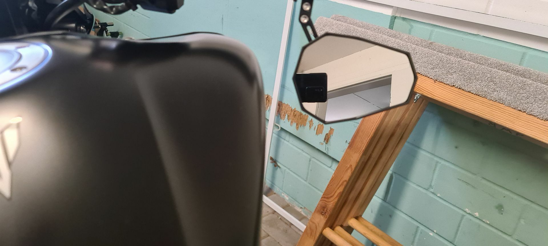 Dann kann man doch z.B. ein Lenkerendengewicht https://www.highsider-germany.…ewichte-m6-yamaha-543023/ mit der 6 mm Schraube am Lenker befestigen und einen Highsider X5 Spiegel https://www.highsider-germany.…endenspiegel-kurz-543400/ auf dieses Gewicht klemmen.
