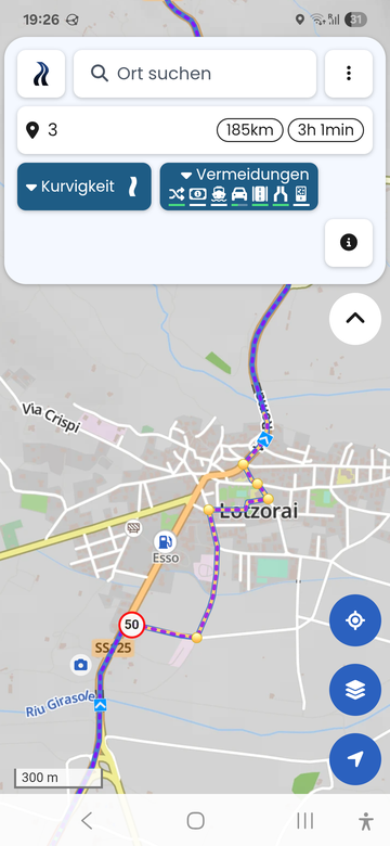 Heute wollte ich die SS125 und nur die SS125, fahren. Alles vorgeplant. Alles richtig. Plötzlich, habe zuviel auf die Landschaft geschaut, hat mich Kurviger auf die SS131 geleitet. Meine schöne Küstentour versaut.