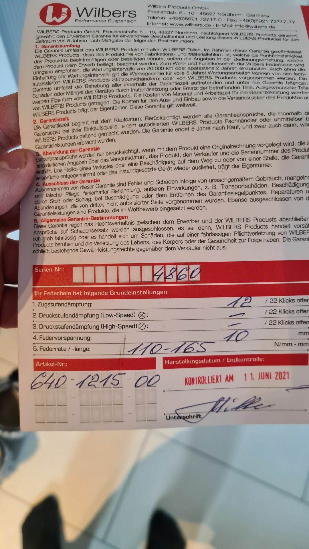 Da es mir um das ansprechverhslten und die harten Stöße die sogar beim ersten hebel kommen Also das Federbein nicht durch die zugstufe blockiert ist kommen kann es leider nur an der Federrate oder druckstufe sein bzgl der Dämpfung uns ansprechverhalten..
